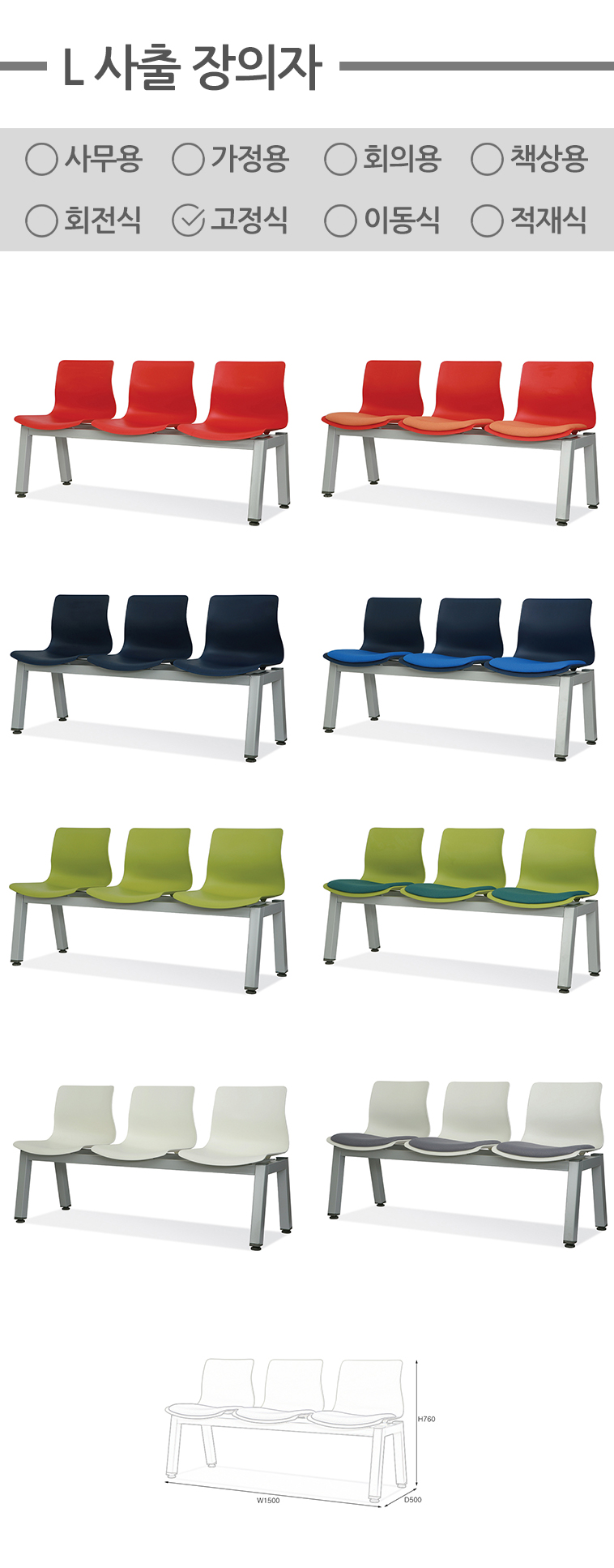 LP / L사출 3인용 장의자