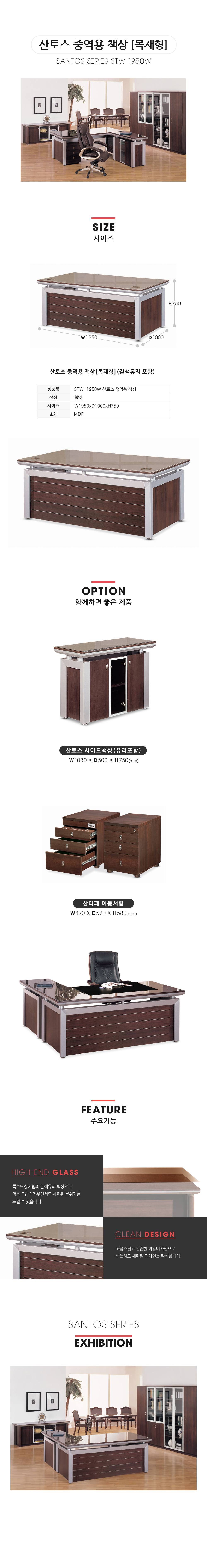 STW-1950W 산토스 목재형 중역용책상 (갈색유리포함)