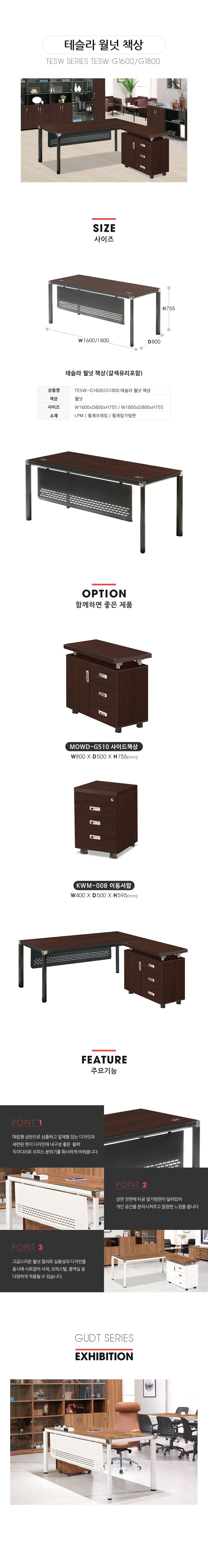 TESW-G1600/G1800 테슬라 월넛 책상(갈색유리포함)