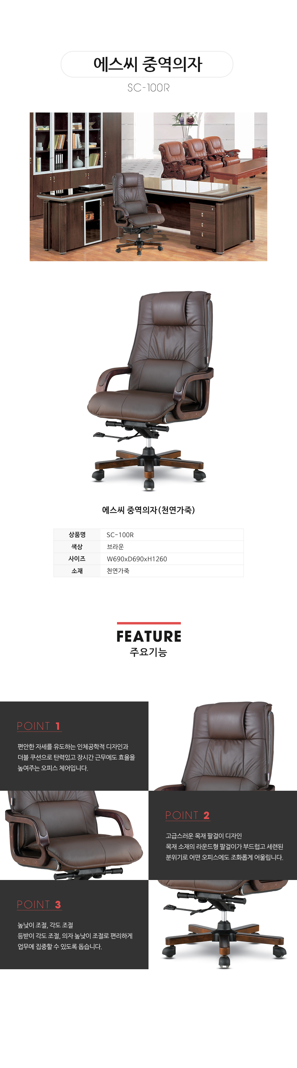 SC-100R 에스씨 중역의자(천연가죽)