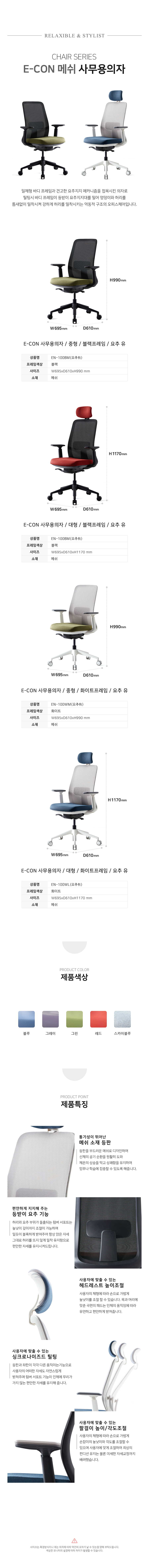 EZ EN-100 E-CON 이콘 메쉬 사무용의자 / 요추유