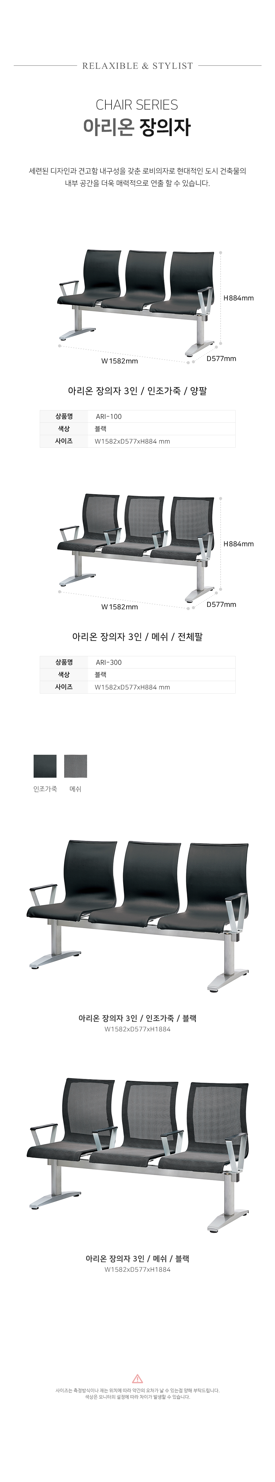 ARI-300 아리온 3인 장의자 / 메쉬