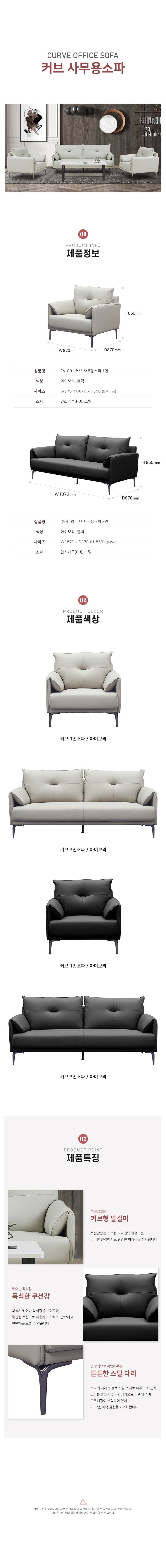 CV-001/003 커브 소파 / 아이보리 / 블랙