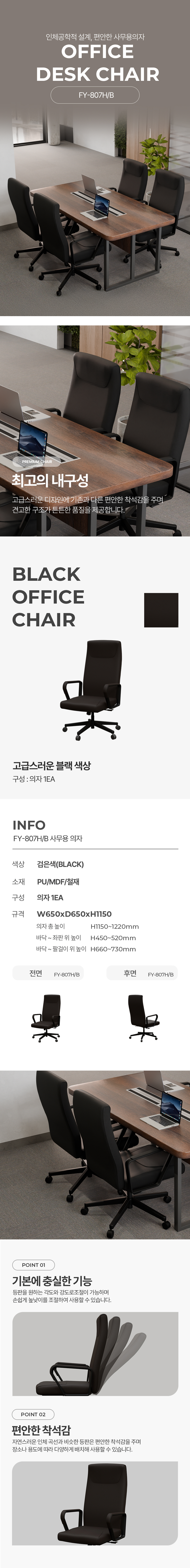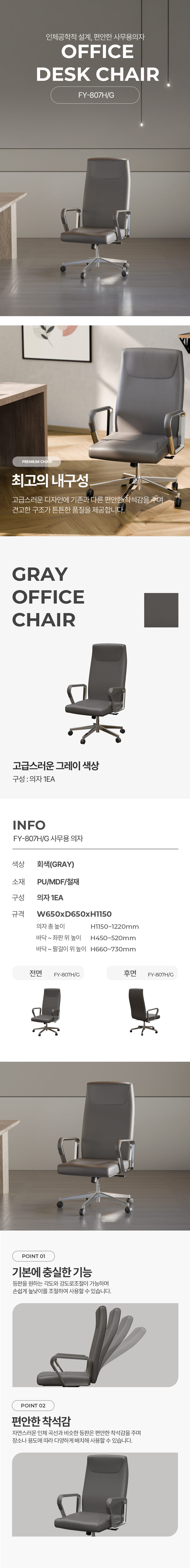 FY-807H (大) 중역용의자(블랙/그레이)