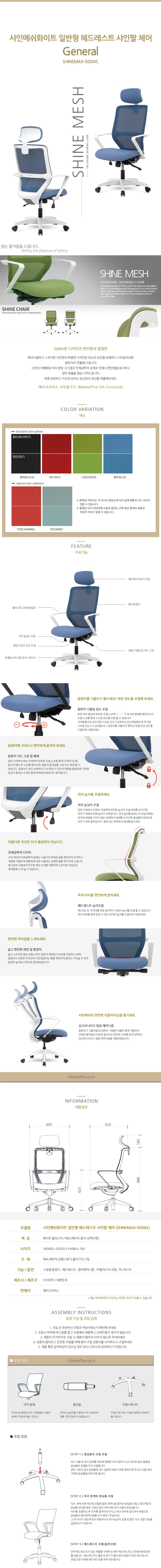 EZ 샤인맥스-500W / 샤인메쉬화이트 일반형 샤인팔 체어