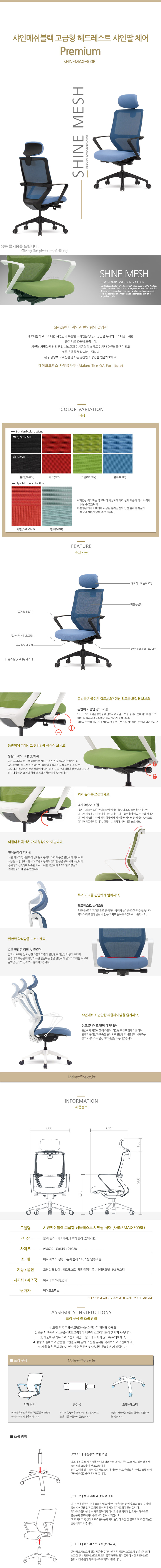 EZ 샤인맥스-300B / 샤인메쉬블랙 고급형 샤인팔 체어