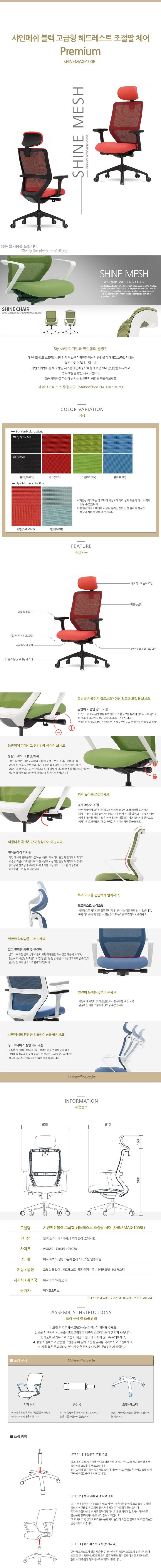 EZ 샤인맥스-100B / 샤인메쉬블랙 고급형 조절팔 체어