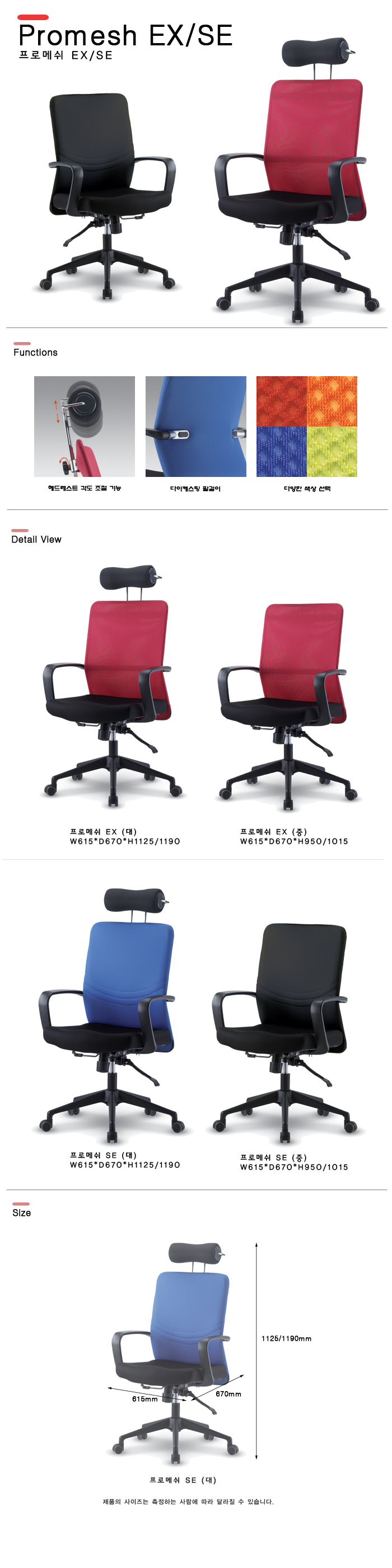 EZ 프로메쉬 EX/SE 사무용의자