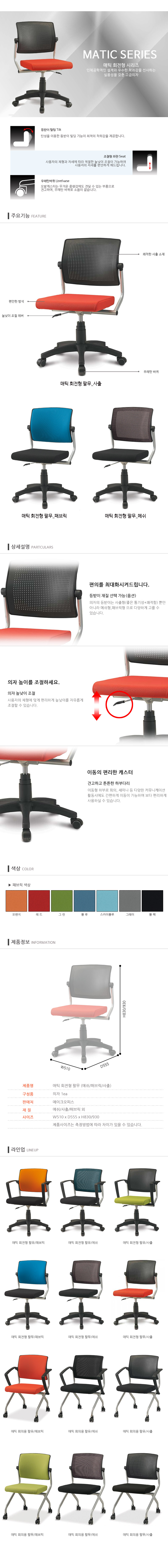 매틱 회전의자 등사출/패드/메쉬 (팔무)