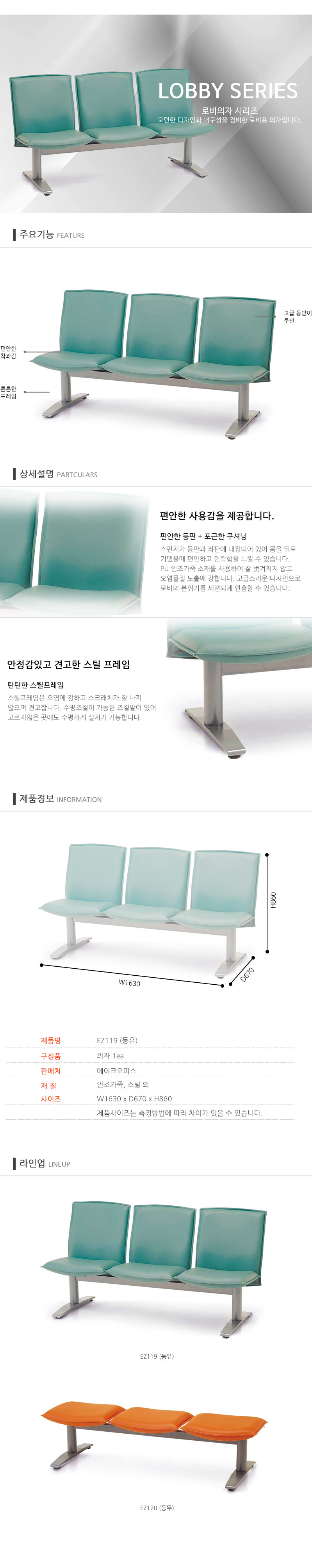 EZ 콤비 장의자 B / 3인용 / 등무